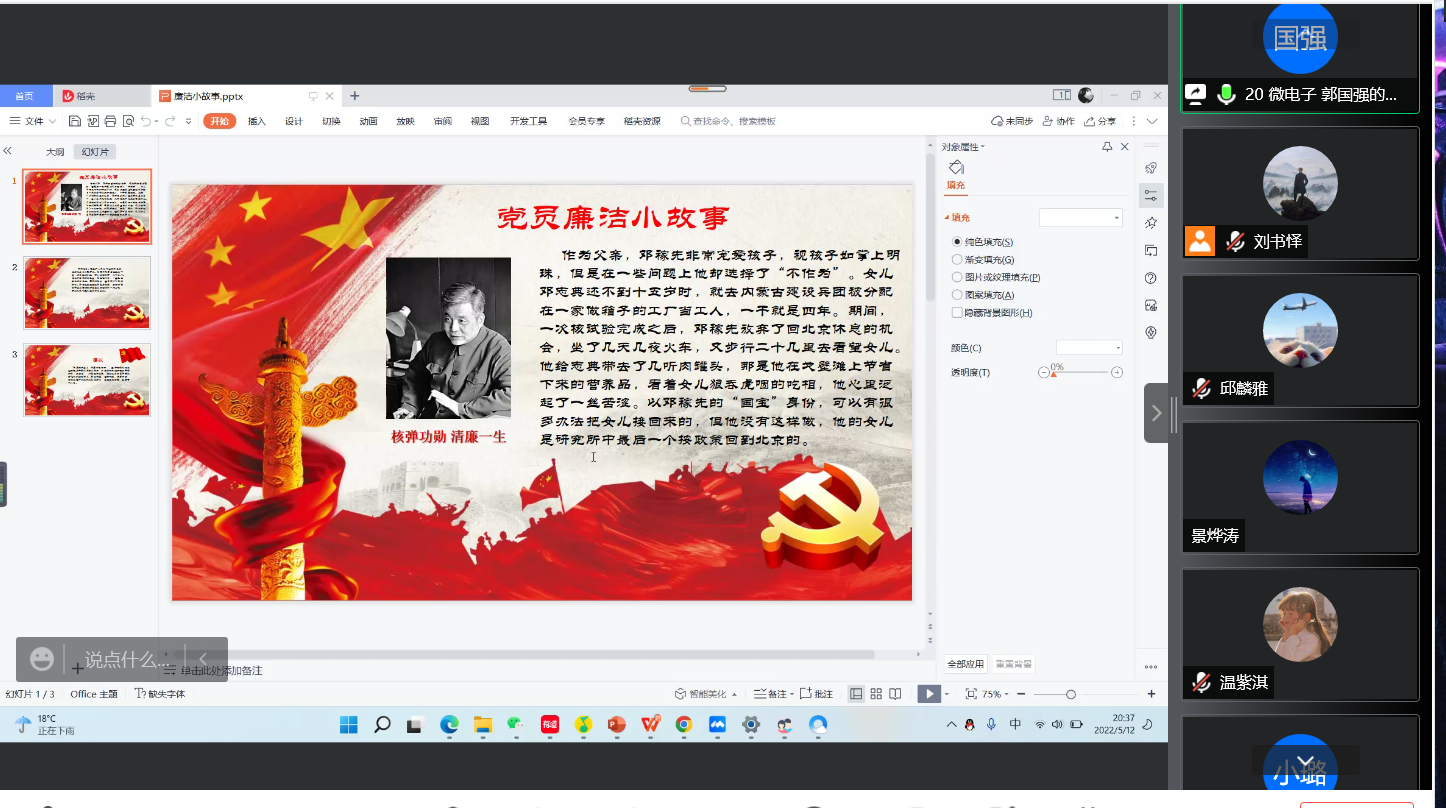 学生党支部开展“清风廉洁进校园故事分享会-5.10思廉日”主题党日活动
