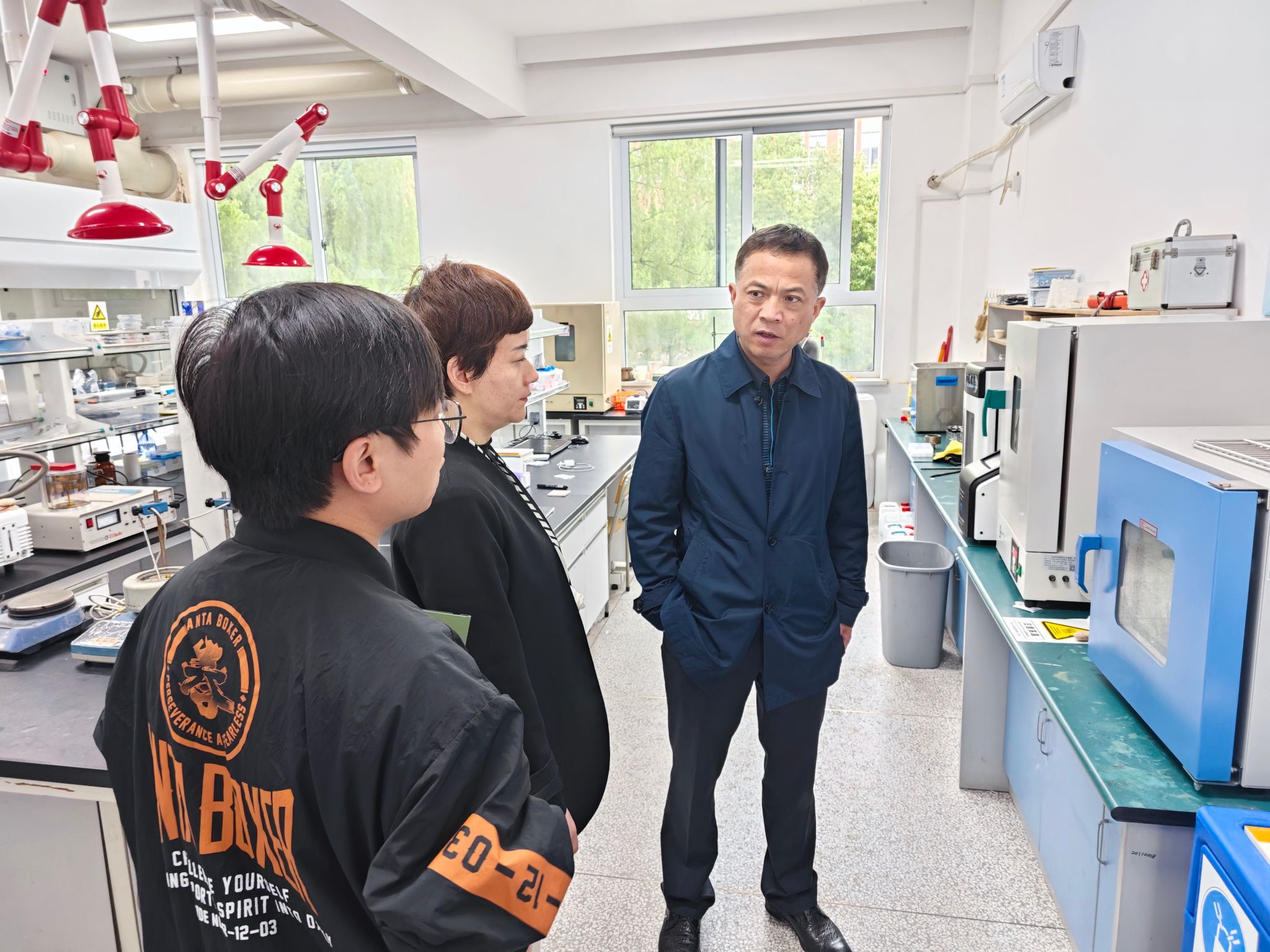 朱书记对实验室危险化学品储存与使用、危险废弃物处理、个人安全防护、实验室消防及环境卫生等方面进行了重点检查,对检查中发现的安全隐患要求立行立改,保障实验室的安全稳定。