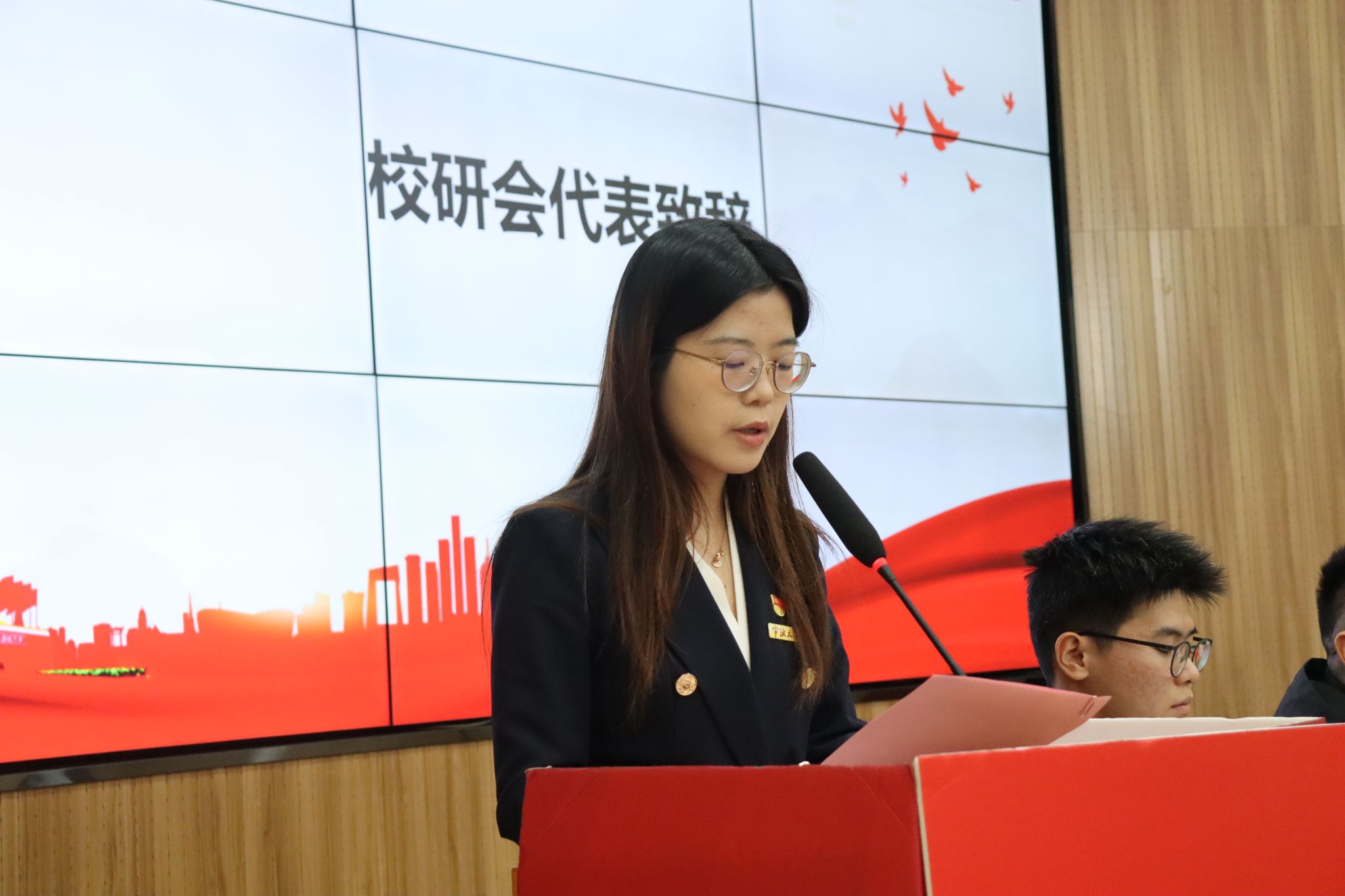 云鼎娱乐城 研究生会主席团成员周柠檬向本次研代会的召开表示热烈祝贺,向一直以来支持关心研究生成长、积极指导学生工作的党政领导、老师以及同学们表示感谢。同时,她也代表校研会对云鼎娱乐城 研究生会的工作提出几点建议:一要擎旗铸魂强引领,增强思想拉力;二要俯身倾耳听心声,凝聚服务引力;三固本培元优机制,激发组织合力。