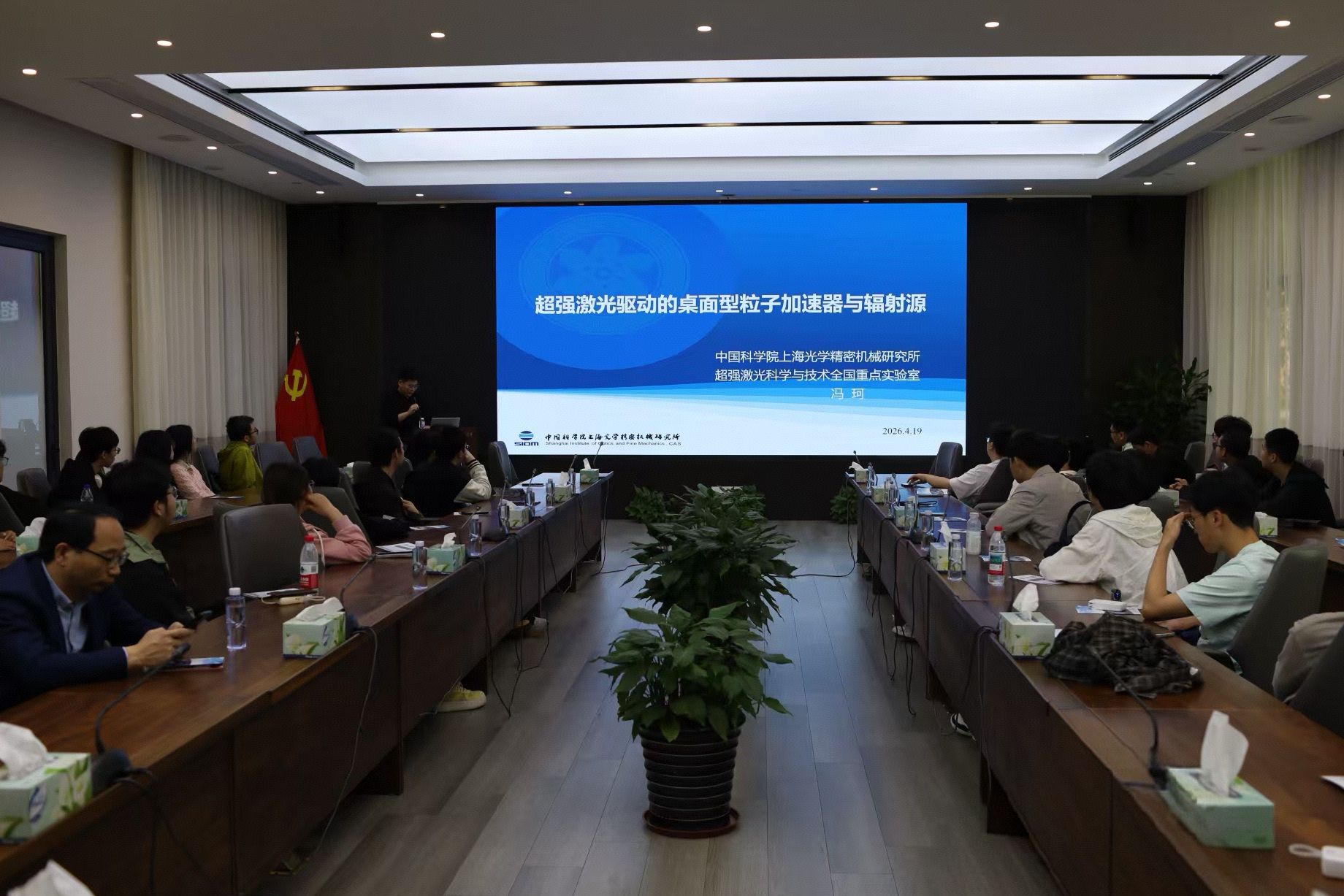 超强激光科学与技术重点实验室冯科研究员为云鼎娱乐城 师生作《超强激光驱动的桌面型粒子加速器和光源》的专题报告,围绕强场激光物理、激光尾场加速原理与小型化自由电子激光前沿成果展开讲解,结合“羲和装置”等重大科技基础设施进展,解读超强激光的国家战略价值与行业发展趋势,为现场师生带来一场兼具科技前沿与使命担当的学术浸润。随后,实验室负责老师从简介、研究方向与成果、影响力及研究生培养情况等维度,介绍了实验室的建设历程、前沿突破与育人平台,让大家真切感受到超强激光领域的科研魅力与广阔前景。