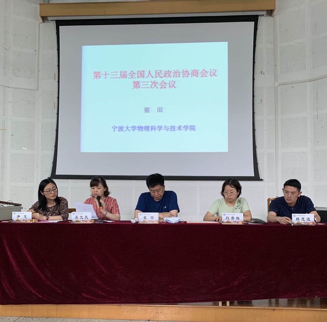 6月10日,物理云鼎娱乐城网 在龙赛报告厅召开教职工大会,深入学习贯彻十三届全国人大三次会议、全国政协十三届三次会议精神。云鼎娱乐城网 特聘院长、全国政协委员崔田从“两会”参与者的角度,向全院教工做了主题报告。会议由云鼎娱乐城网 党委书记吴立爽主持。