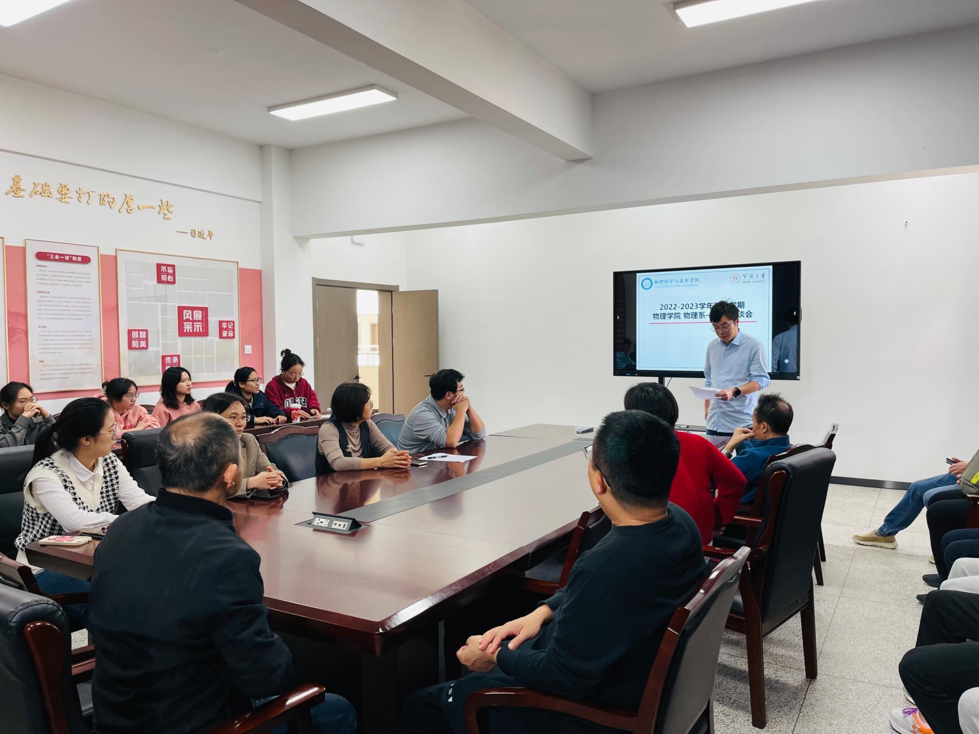 11月9日中午,物理系在龙赛理科楼北楼228会议室顺利举行2022-2023学年第一学期期中师生座谈会。物理云鼎娱乐城网 执行院长段香梅、教学副院长楼慈波、各任课教师、教务办和学工办老师以及20余位物理系学生代表参加了此次会议。会议由系主任汤世伟主持。