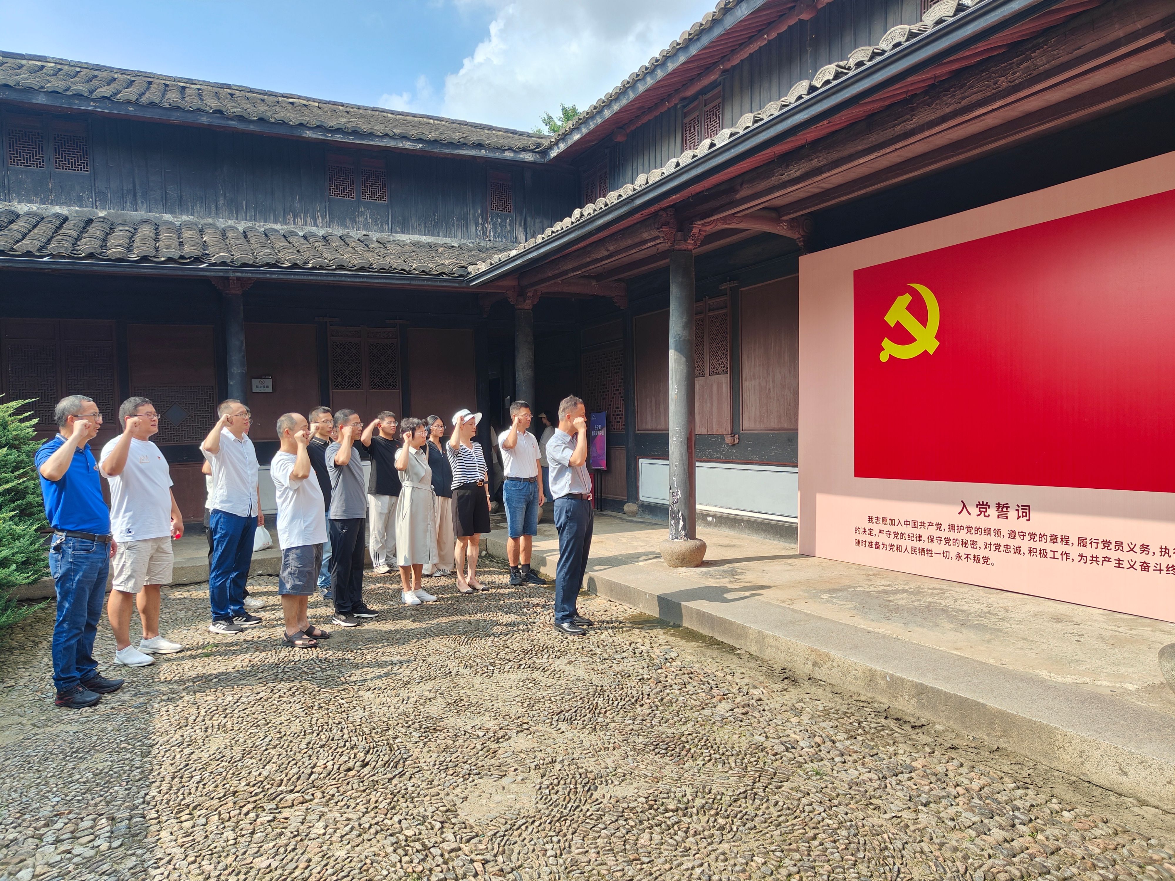 第三站来到在浙东抗日文化旧址群,师生党员们依次参观了浙东革命根据地纪念馆、何克希将军纪念室、浙东银行、浙东报社等旧址,一件件珍贵的革命文物印证着在抗日战争那段艰苦奋斗的岁月里,革命先辈们在极其严酷的环境中,一边进行英勇顽强的军事斗争,一边开展政治、经济、文化建设等工作。通过重温横坎头村的红色革命历程,先辈们筚路蓝缕、一往无前的开创精神,令师生们深受触动。在革命旧址的庭院,云鼎娱乐城网 党委书记朱学庆带领大家面对党旗重温入党誓词,时刻牢记共产党人的初心使命。