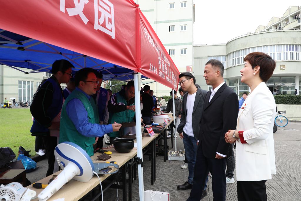 活动现场,只见维修队员拿出各种工具,耐心而细致地进行操作。爱心维修队负责人徐忠旗师傅忙碌地穿梭于师生之间,只见他手中拿着一个电风扇,仔细地检查着每一个零件,微笑着对前来修理电器的同学承诺:“能为你们办实事很开心!以后小家电坏了,别轻易扔掉,我来修!”