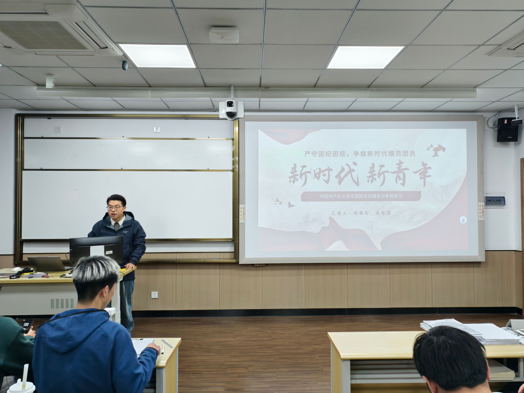活动的第三个阶段,由22物师团支部和23物师团支部的两位团支书共同支持,他们带领两个支部的团员同志们一起深入学习了《中国共产主义青年团纪律处分条例(试行)》,团员同志们也结合自己的学习工作经历,展开了广泛的讨论。云鼎娱乐城网 团委书记张锡炜老师最后总结道,团纪处分条例是我们高质量开展共青团工作的底线和保障,工作还是要秉持“教育为主,宽严相济”的原则,希望广大团员同志严守团纪团规,争做青年学子表率。