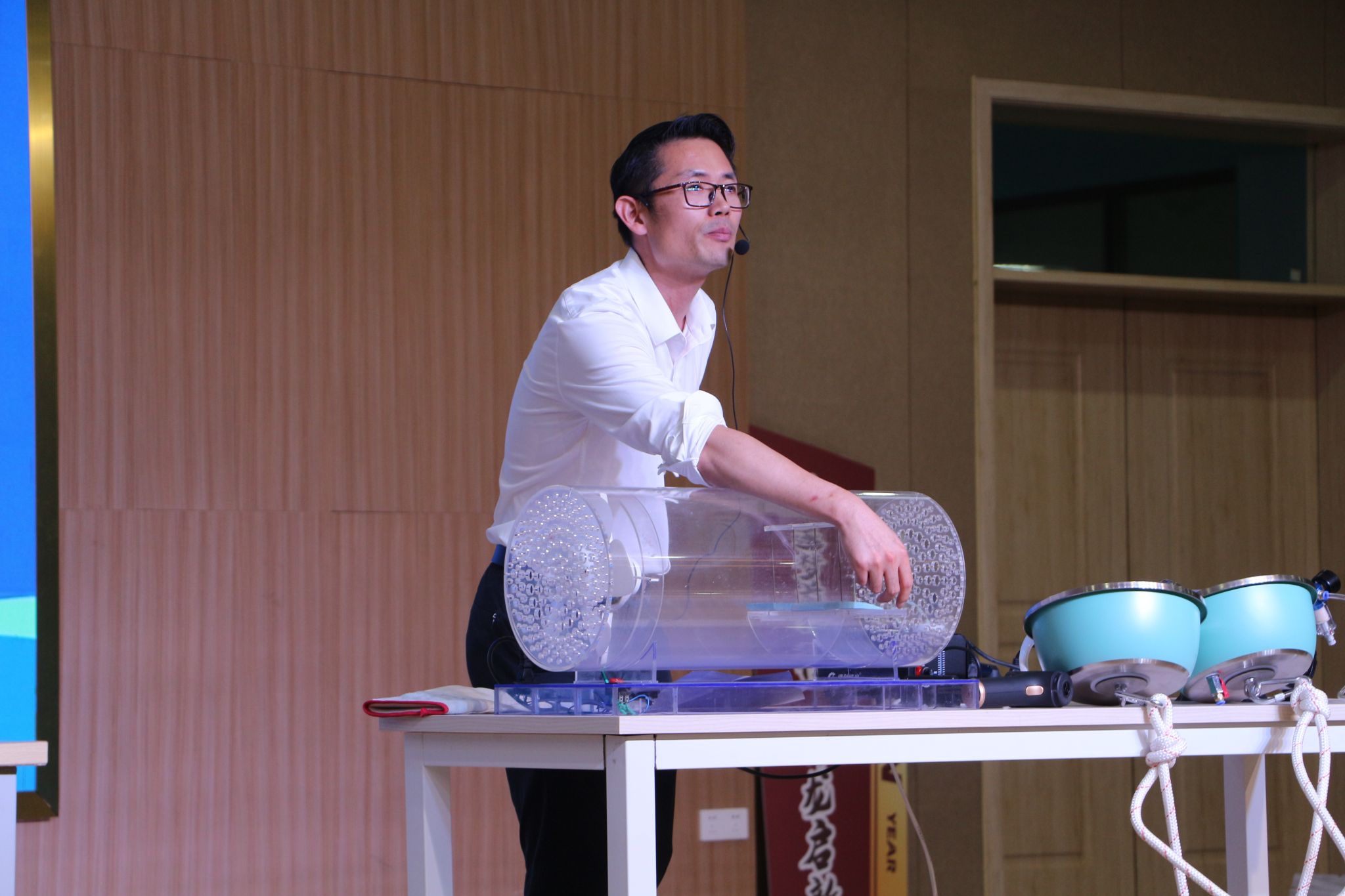 胡老师利用物理探索中心超导磁悬浮实验仪器,展示超导磁悬浮现象,之后由楼慈波教授通过力学和无人机两个专题实验进行讲解。