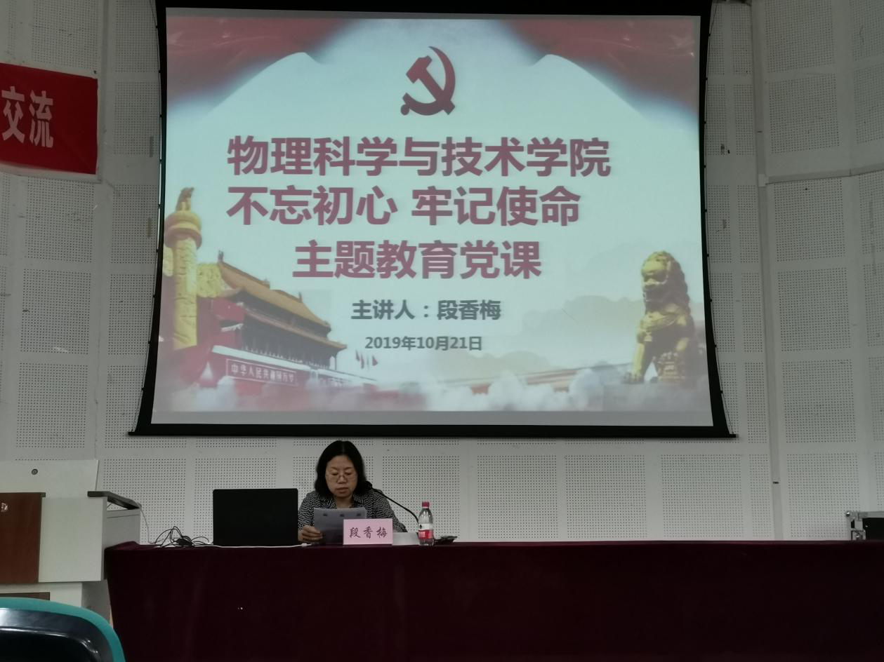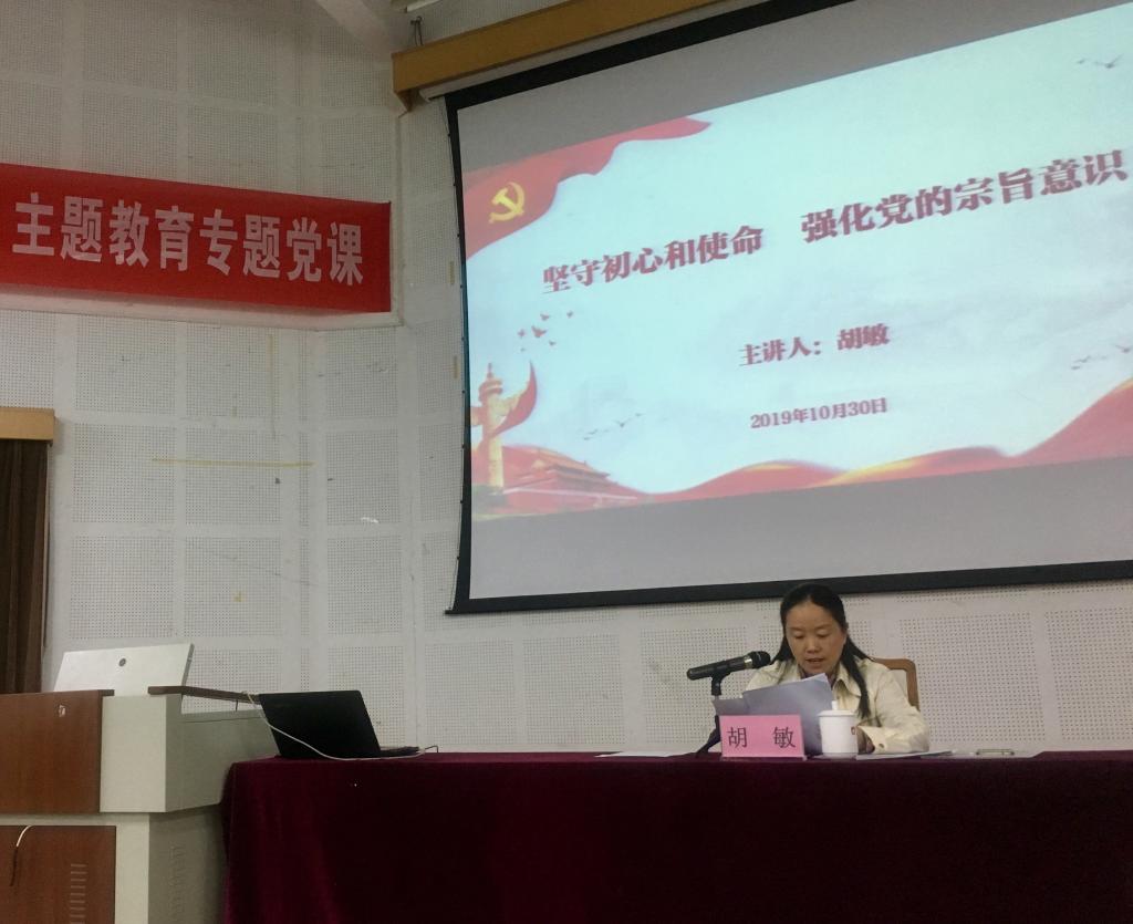 党委委员、组织部部长胡敏以《坚持初心和使命,强化党的宗旨意识》为题,在龙赛报告厅给物理云鼎娱乐城网
