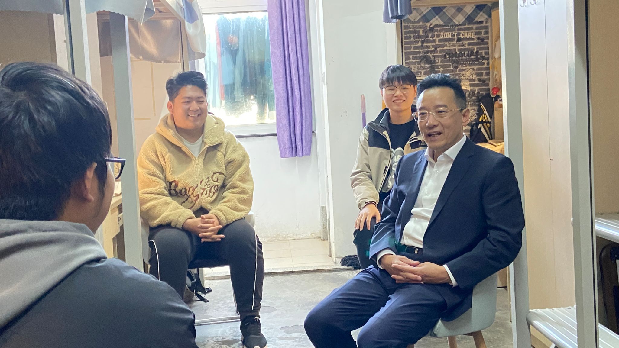 学生寝室,与同学们进行了亲切而深入的交谈。此次走访旨在更好地了解学生们的学习生活状况,关心学生的身心健康,以及倾听学生们的需求和建议。朱书记的再次来访,让学生们充满期待。朱书记坐在寝室中与学生们拉家常,询问他们近期的学习情况、生活状况,未来规划等。他饶有兴致地听学生们讲述各自的学习生活感受。当听到寝室4人都有意向考取研究生时,朱书记高兴的给予了鼓励,并...