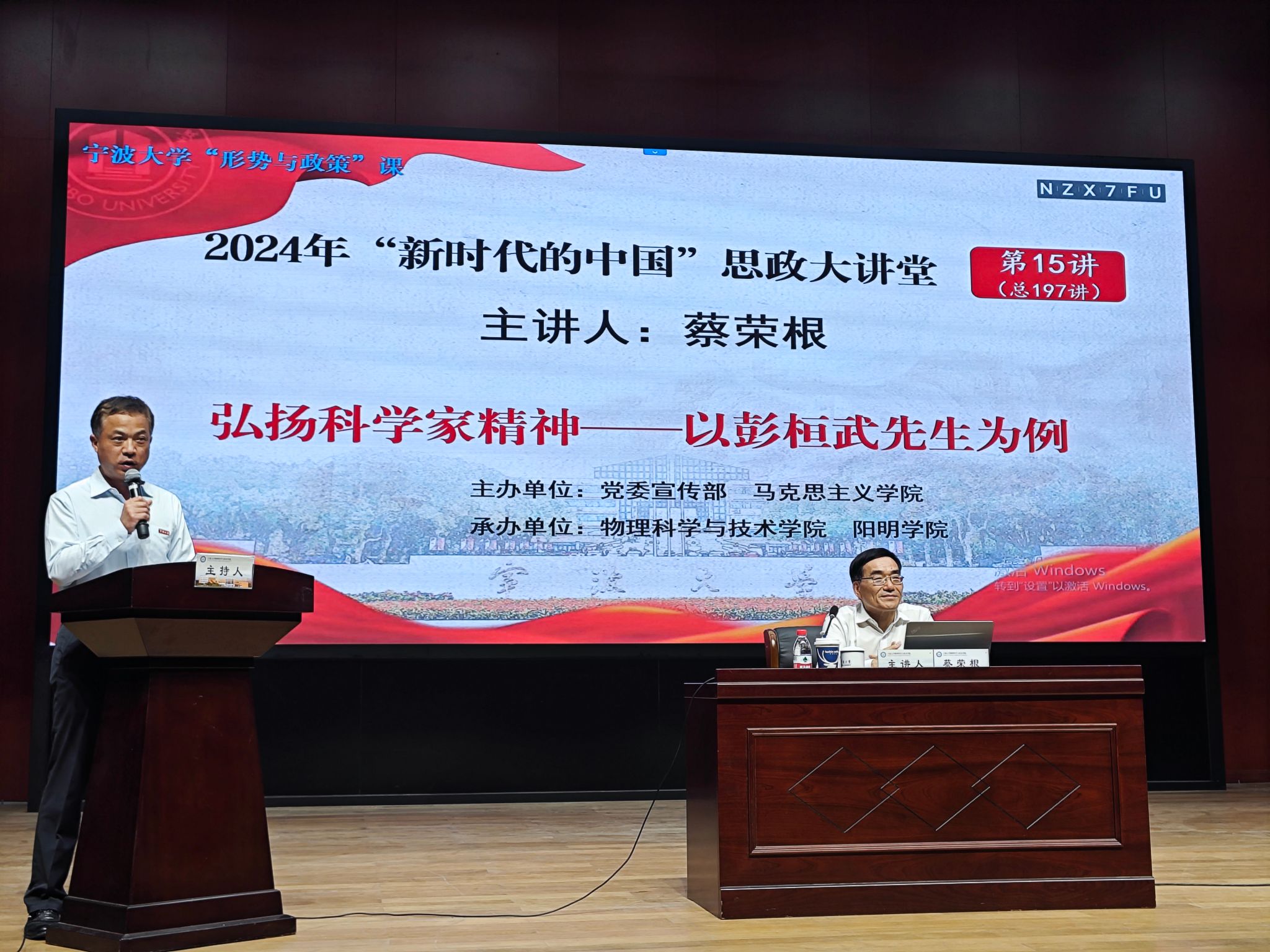 5月22日,校长蔡荣根院士在忻元甫报告厅以“弘扬科学家精神——以彭桓武先生为例”为主题,为物理科学与技术云鼎娱乐城网